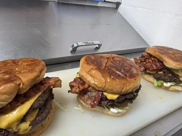 A thick, real beef burger smashed and cooked on the flat top, giving it that crispy edge and bold, juicy flavor you can’t fake.